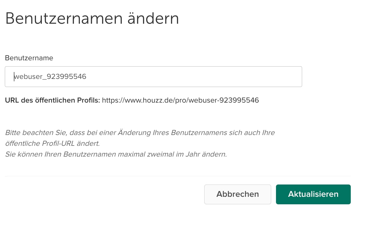 Sie können Ihren Benutzernamen ändern, nachdem Sie Ihr Houzz-Profil erstellt haben.