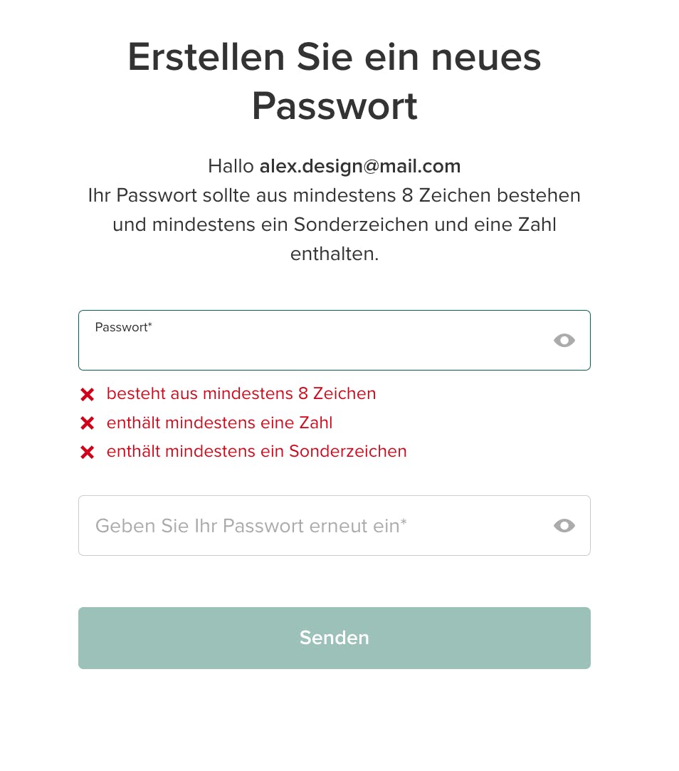 3. Sie werden aufgefordert, sich aus Sicherheitsgründen erneut anzumelden. Es wird ein neues Fenster angezeigt, in dem Sie ein neues Passwort erstellen können. Geben Sie Ihr neues Passwort in das dafür vorgesehene Feld ein und bestätigen Sie es anschließend noch einmal in dem Feld darunter. Klicken Sie auf „Senden“, und Ihr Passwort wird nun geändert.
