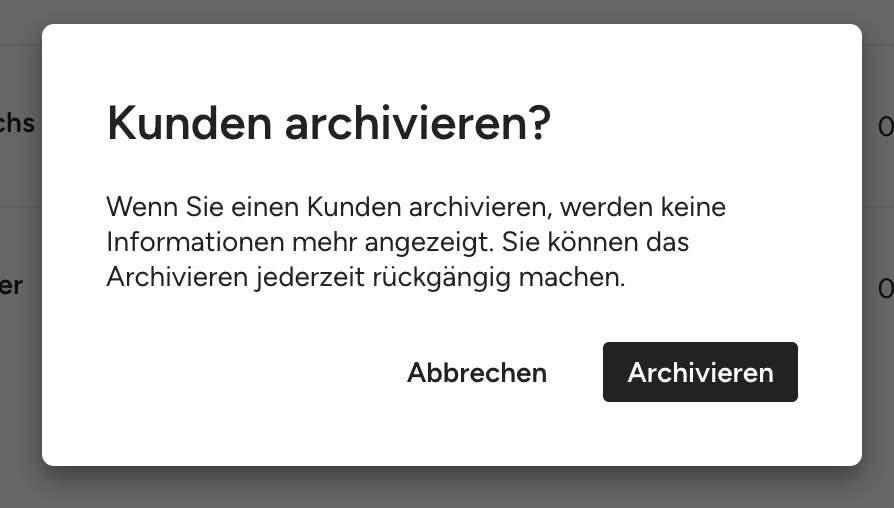 Um einen Kundeneintrag zu löschen, müssen Sie ihn zunächst in Ihrer Kundenliste archivieren.