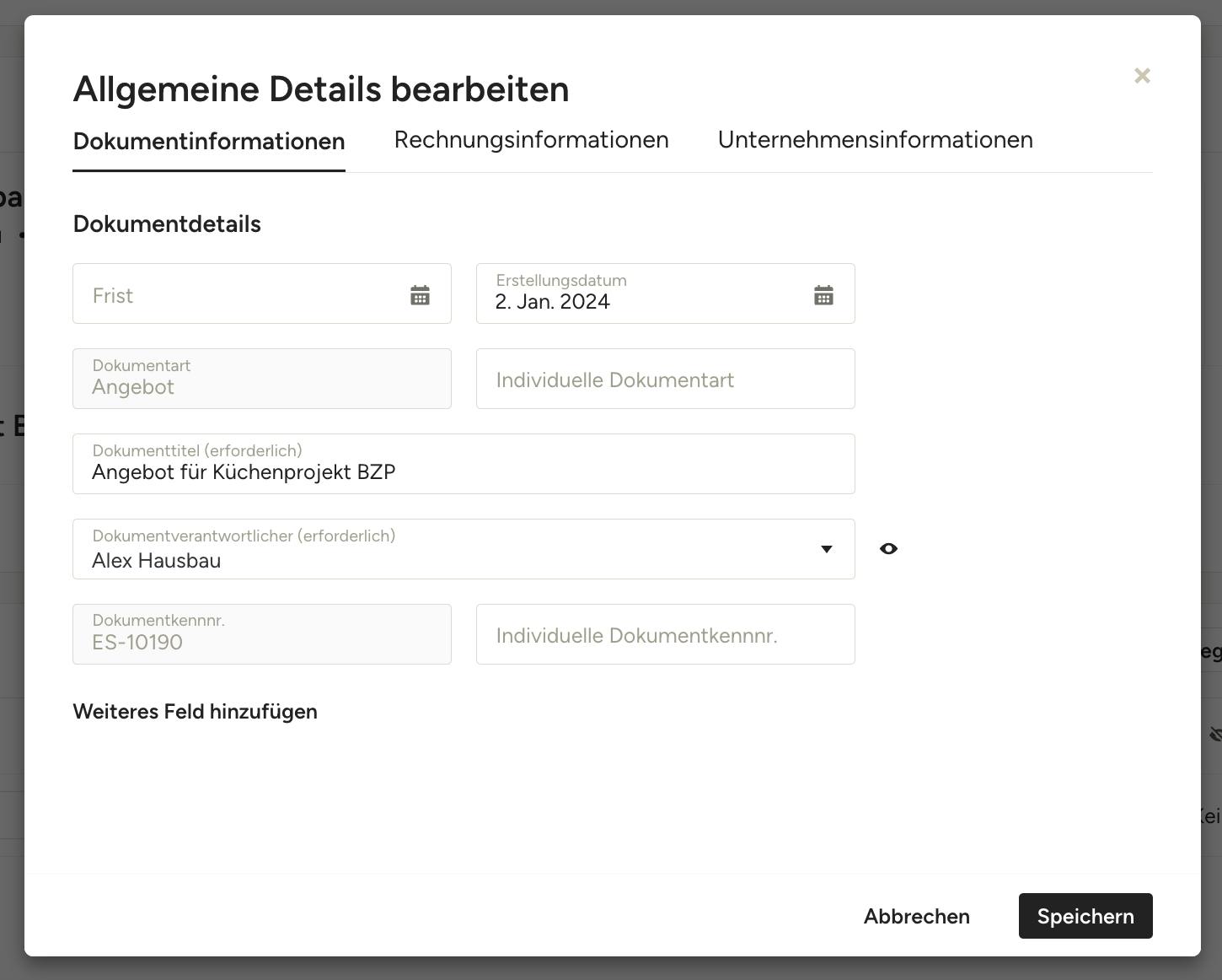 Allgemeine Dokumentendetails bearbeiten