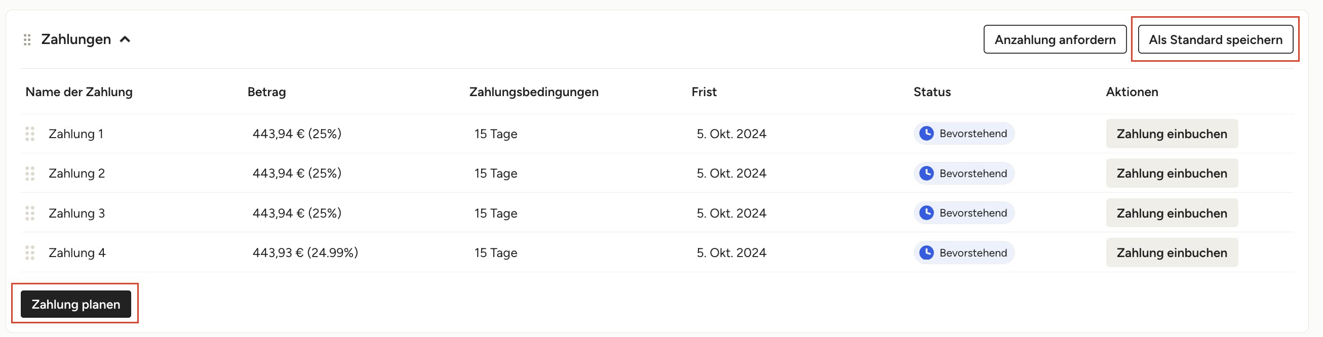 Bearbeiten von Zahlungsplänen