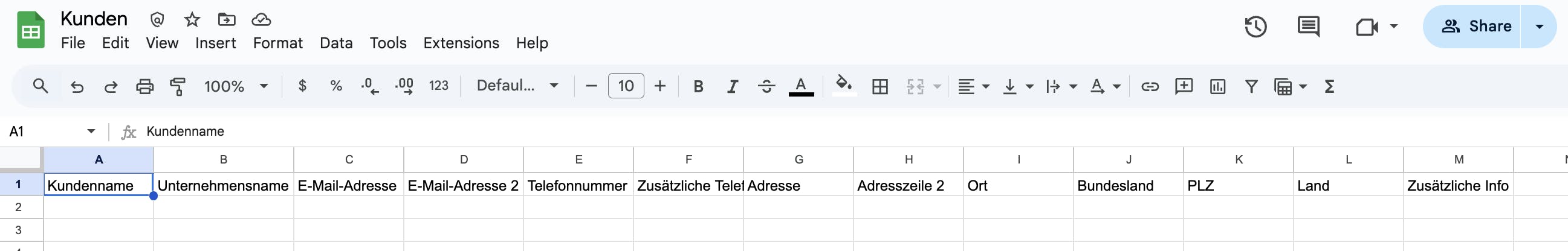 4. Öffnen Sie die heruntergeladene Vorlage und tragen Sie Ihre Kontakte ein oder kopieren Sie die Formatierung der Vorlage in Ihre eigene Datei, um sie anzupassen.