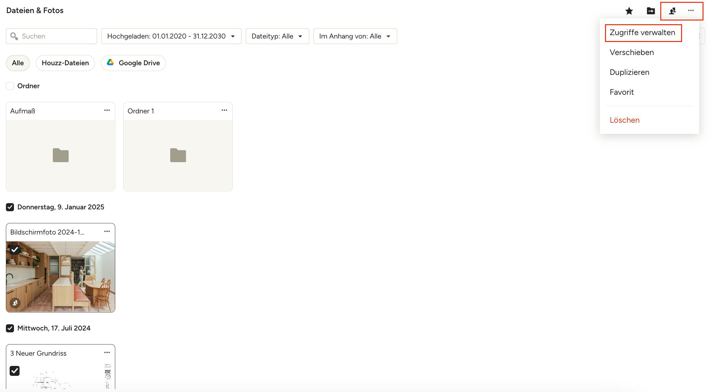 Wählen Sie das Personen-Symbol oder das Symbol mit den drei Punkten am oberen Bildschirmrand und wählen Sie dann „Zugriffe verwalten“.
