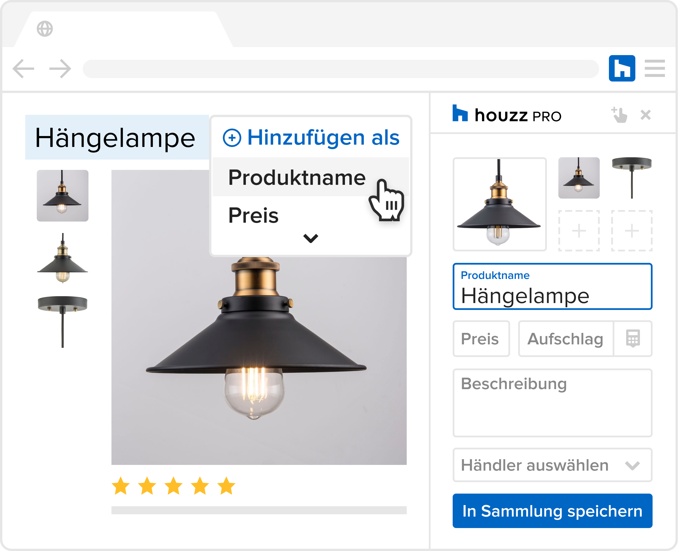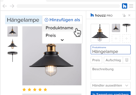 Mit dem Houzz Pro Produkt-Clipper Zeit bei der Designplanung sparen